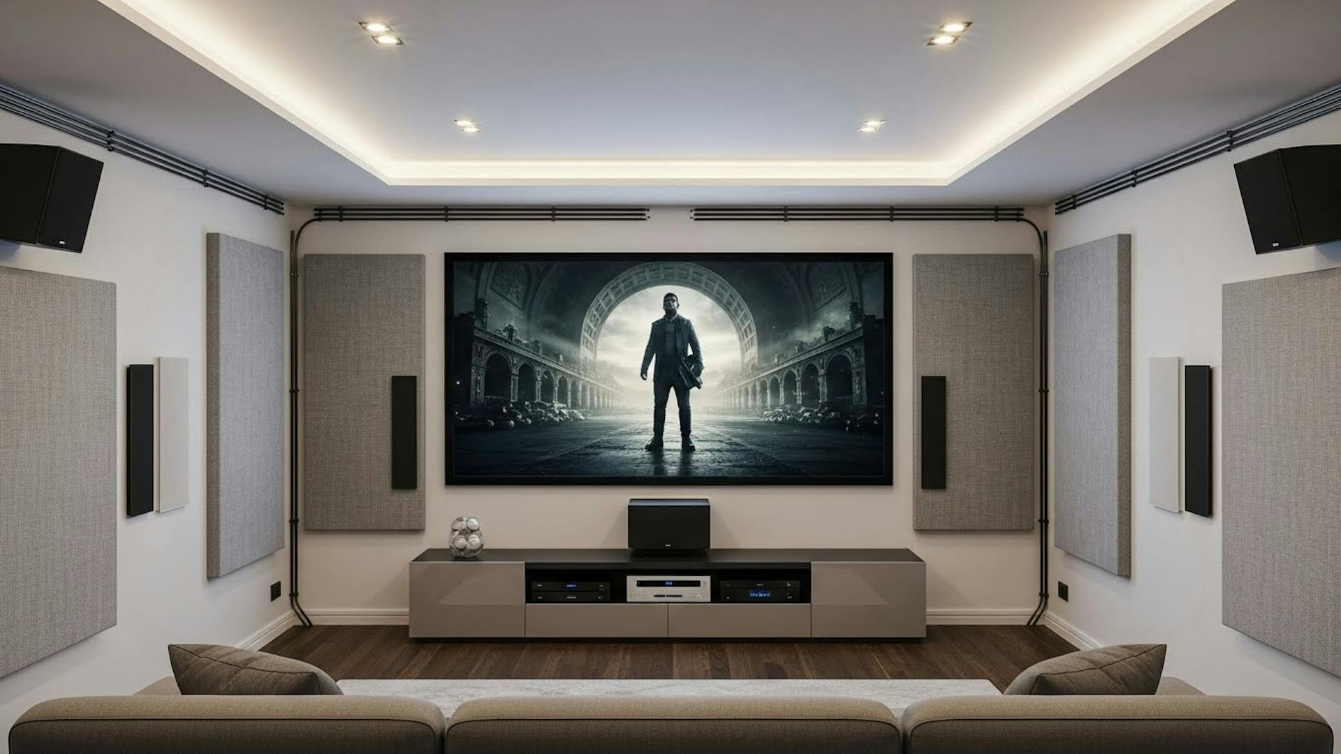 El mobiliario a medida juega un papel importante, ya que permite integrar el sistema de sonido sin afectar la estética del espacio. Muebles técnicos, paneles acústicos, decorativos y soluciones ocultas mantienen el diseño limpio y elegante.