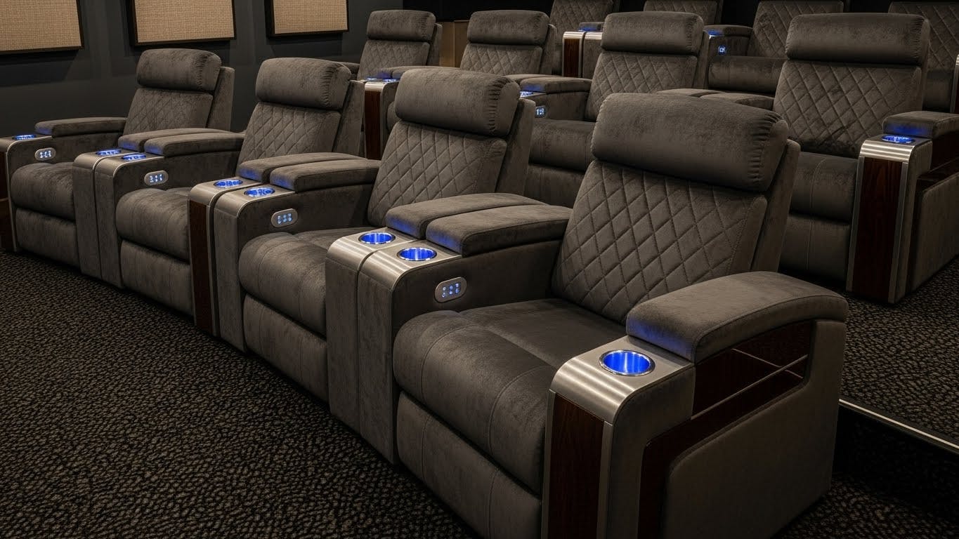 Aquí, el confort es tan importante como la tecnología. Un cine en casa de lujo debe contar con mobiliario diseñado específicamente para el espacio y el uso. Asegurando que cada pieza se adapte al espacio, a la acústica y al estilo del hogar, permitiendo crear un ambiente sofisticado y coherente con el resto del diseño interior.