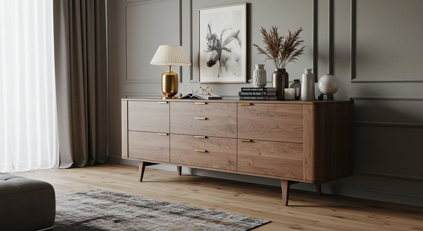 Un mueble de lujo no se fabrica con aglomerados ni maderas genéricas. Se utilizan maderas nobles y resistentes como nogal, roble, ébano o caoba, seleccionadas cuidadosamente por su durabilidad y belleza natural. Una imitación suele presentar acabados laminados o chapas que imitan la veta, pero que carecen de la profundidad y el carácter únicos de una madera real. Al tacto, una madera auténtica transmite calidez y firmeza, mientras que una imitación suele sentirse artificial y hueca.