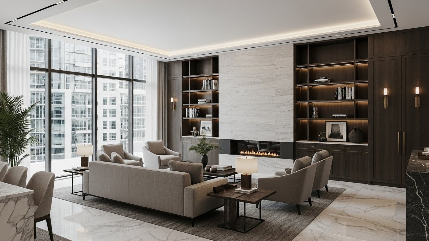 Aquí se combinan la estética, el confort, la funcionalidad y los materiales premium. Todo lo que elegiste en el diseño —desde el mármol de tu isla hasta la madera de tu centro de entretenimiento— se materializa en esta etapa.