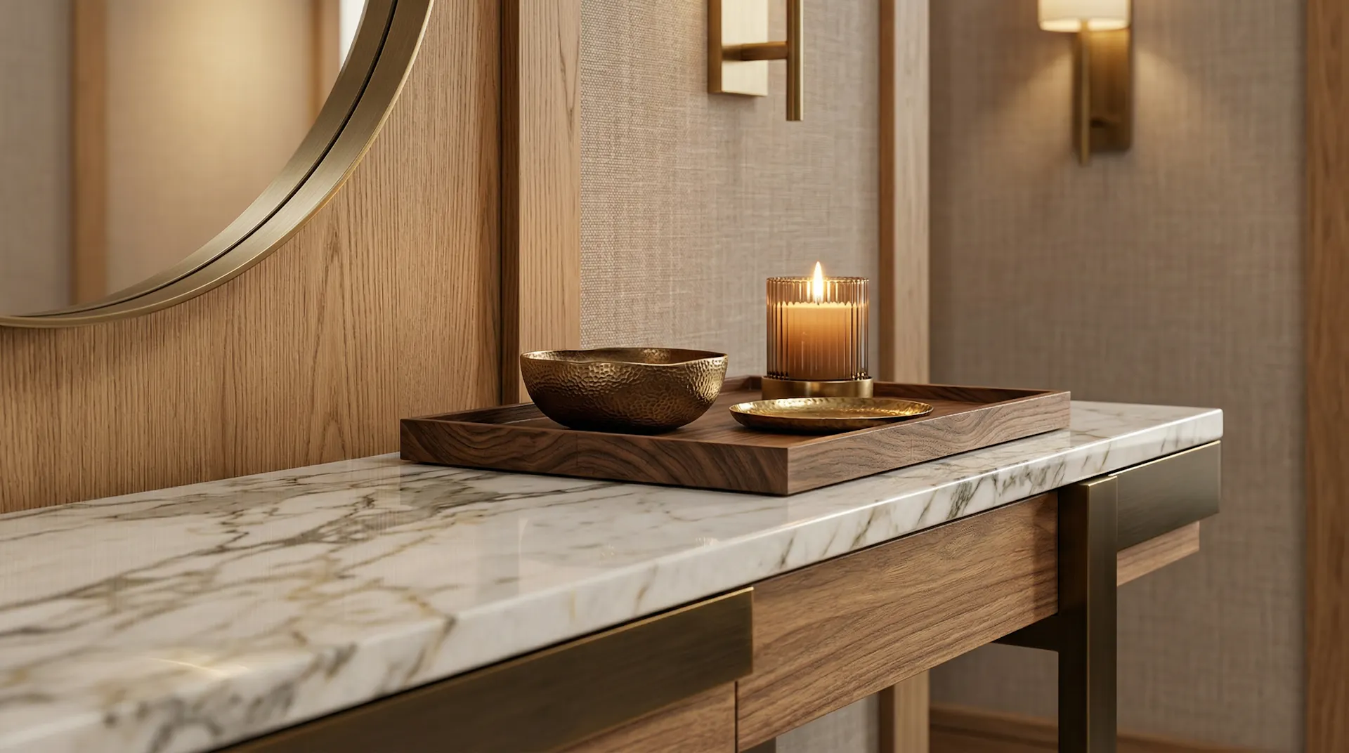 Los materiales son clave en la percepción del espacio. Maderas naturales, superficies en piedra, metales elegantes o acabados bien trabajados elevan inmediatamente la sensación de lujo.